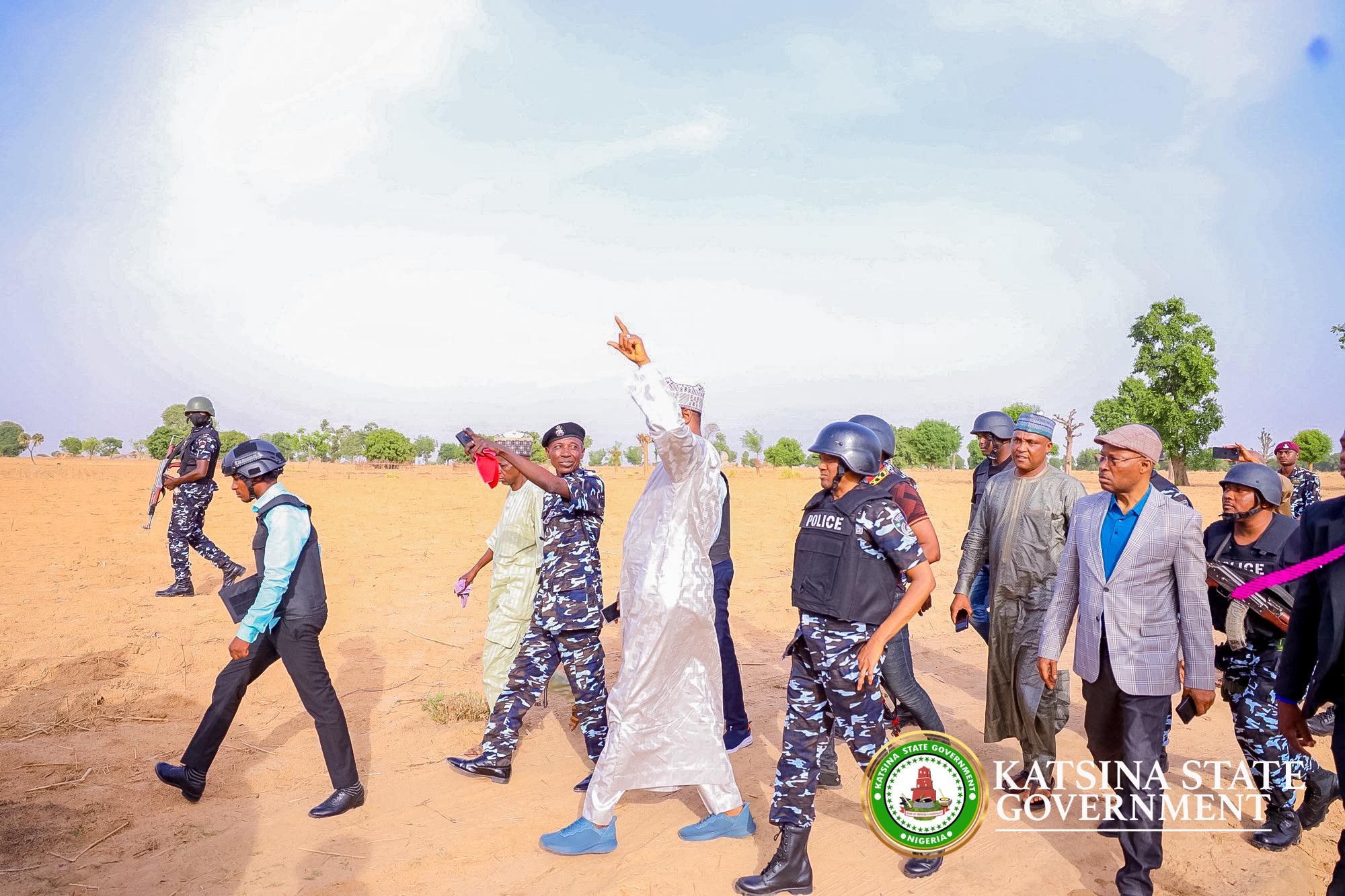 Katsina State Governor, Dikko Umaru Radda led a top-level security delegation to Maharba village in Matazu Local Government Area to conduct an on-the-spot assessment following a tragic bandit ambush that claimed lives of five Community Security Watch Corps personnel.