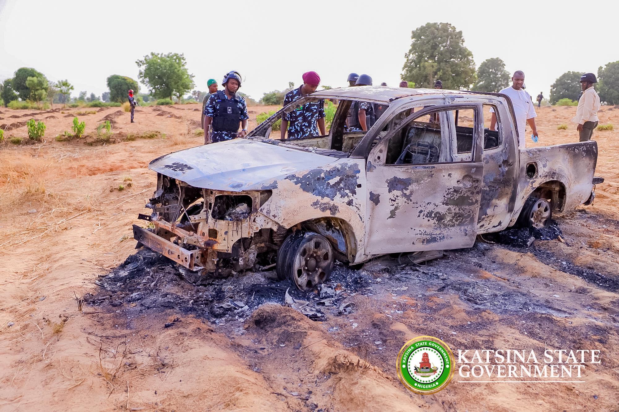 The Commander and his team were trapped at the location, with their Hilux vehicle set ablaze during the attack. The vehicle was still smoldering when Governor Radda arrived at the scene for his assessment.